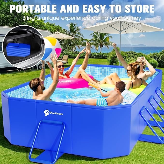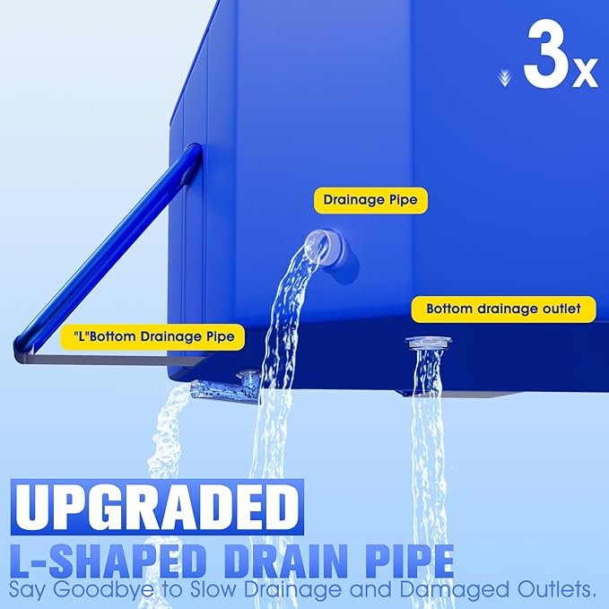 - Effortless Storage, Eternal Pleasure:Folding this pvc pool is a breeze! Just 4 steps, and it’s ready to be stashed away. It shrinks down to 75% of its original size. And those L-shaped drainage holes? They’re a game-changer! drain water 32% faster than traditional ones, with a maximum flow rate of 19 gallons per minute, no inflation hassles, allowing users to quickly assemble the portable pool and start enjoying their aquatic experience