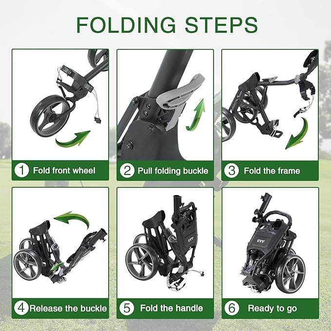 KVV 3 Wheel Golf Push Cart Ultra Lightweight Smallest Folding Size, New-Version Scorecard Holder
