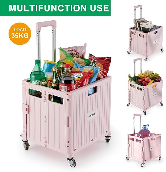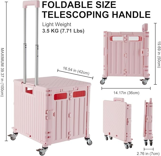 • 【Foldable Design for Convenient Storage】: This compact rolling cart can be easily folded down to a size of 17.72*14.17*2.76 inches, saving space. It’s lightweight ( 7.71 pounds) and can be conveniently carried in a backpack or handbag to meet your practical needs. Unfold the hand truck whenever needed for added convenience.